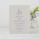 Une élégante faire-part de mariage classique et moderne avec un thème nautique, avec un effet imitation gaufrée pour un cadre double et un dessin d'un bateau, sur un arrière - plan en papier perle texturé. La couleur bleu marine du texte améliore le thème nautique avec une touche de couleur discrète. Il est également doté de calligraphie traditionnelle. Vous pouvez personnaliser complètement ce do-it-yourself faire-part de mariage. Un bon choix pour un mariage de bateau, un mariage de yacht, un mariage d'océan, un mariage de bord de mer, un mariage au bord de l'eau ou un mariage à la plage, pour un couple qui aime l'océan, la mer, la plage, la voile, etc.