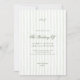 Donnez le ton de votre fête avec cette faire-part de mariage classique vert olive, conçue avec des rayures élégantes et des détails intemporels. Parfait pour un mariage, une cérémonie de jardin ou une fête de fiançailles traditionnelle, cet invitation allie style sophistiqué et palette de couleurs raffinée. Idéal pour les couples à la recherche d'une invitation de mariage minimaliste mais polie. Idéal pour les mariages de automne, les événements à thème vert et les célébrations classiques modernes.