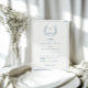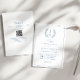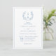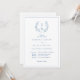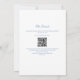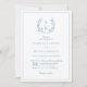Invitation de mariage élégante avec calligraphie et couronne de monogramme botanique code QR bleu royal.