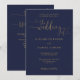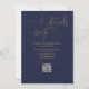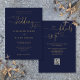 Cette élégante invitation de mariage bleu marine et or avec calligraphie de cœur peut être personnalisée avec vos informations en typographie chic avec les détails de votre site web de mariage et votre code QR au verso. Conçu par Thisisnotme©
