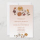 Faire-part de mariage avec réponse par QR Code sur le thème Floral Bohème Rétro... Des bouquets floraux fantaisistes dans un style bohème rétro encadrent le texte de votre invitation de mariage dans un script de calligraphie moderne et une typographie élégante serif et sans serif sur un fond dégradé de sable du désert chic. Au verso de l'invitation figure le code QR de votre site web de mariage pour que les invités puissent répondre en ligne tout en consultant les informations importantes sur vos prochains mariés. Tout le texte, à l'exception du script de calligraphie, peut être facilement révisé sur le modèle de personnalisation.