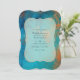 Invitation de mariage damassée sarcelle et cuivre vintage étincelante avec calligraphie élégante personnalisable selon les spécificités de votre événement. Le code QR au verso dirige vers votre site de mariage où les gens peuvent en apprendre davantage et répondre.