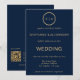 Invitation Mariage code QR monogramme or et bleu marine éléga