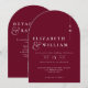 Cette invitation de mariage minimaliste à monogramme burgundy peut être personnalisée avec vos informations en typographie moderne et le code QR de l'adresse de votre site web de mariage au verso. Conçue par Thisisnotme©