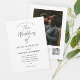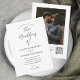 Invitation de mariage avec code QR noir et blanc Script Moderne. Le dos comporte une photo (que vous pouvez supprimer) et des détails supplémentaires avec le code QR de RSVP. Cliquez sur le bouton modifier pour personnaliser ce design selon vos besoins.