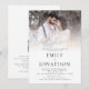 Mariage simple avec code QR sur photo. Avec un code QR renvoyant à votre site web de mariage au verso pour que vos invités puissent répondre et voir tous les détails en ligne sans avoir besoin d'insertions séparées. Votre code QR sera généré automatiquement pour mettre à jour le code exemple dans le design, lorsque vous changerez simplement l'URL exemple dans le modèle avec l'URL de votre propre site web de mariage. Typographie moderne et simple que vous pouvez facilement personnaliser. Remplacez la photo exemple par votre préférée.