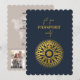 Un passeport de mariage bleu marine de destination avec boussole dorée et éléments de voyage. Ce design est idéal pour tous les mariages de destination printemps, été, automne et hiver. Un élégant design de voyage bleu marine et or mariage avec la disposition des passeports, carte du monde et photo de couple personnalisée. Un design moderne d'invitation de mariage de destination avec des éléments élégants. Des articles de papeterie mariage correspondants et d'autres formats d'invitation de mariage sont également disponibles.