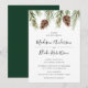 Invitez vos invités à votre mariage d'hiver avec nos magnifiques cartons d'invitation Cône de Pin aquarelle. Les invitations présentent une bordure supérieure de cônes de pin aquarelle marron et de branches de pin vertes. Personnalisez les cartons d'invitation au cône de pin en ajoutant vos noms dans un script de calligraphie moderne et les détails ci-dessous. Les invitations se retournent sur un fond vert forêt uni. Parfait pour les mariages d'hiver et de fêtes. Conçu pour coordonner avec notre collection de mariage Cône de Pin Aquarelle d'Hiver.