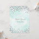 Des invitations personnalisées à des mariages dans un motif bleu azur clair avec des confettis argentés glamour. Veuillez noter que l'argent est un effet photographique seulement.