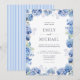 Célébrez votre romance intemporelle avec ce faire-part de mariage élégant à l'hydrangea bleue. Des florales aquarelles délicates encadrent la typographie classique, parfaitement complétées par un dos rayé bleu et blanc classique. Ce design est idéal pour les couples qui prévoient une célébration estivale côtière sophistiquée ou un mariage de jardin printanier traditionnel.