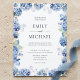 Invitation Mariage Côte d'Azur Aquarelle Hydrangea Bleue