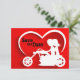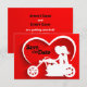 Faire-part de mariage à moto couple silhouette Save the Date en rouge, blanc et noir.