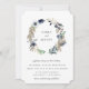 Belle couronne aquarelle de feuillage et de fleurs taupe, bleu marine et vert, invitation de mariage. Le dos de la carte est d'une couleur bleu marine uni.