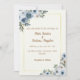 Invitation vos invités à votre journée spéciale avec cette carte crème élégante avec bordure or et arrangement floral bleu.