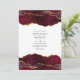 Faire-part de mariage en pierre d'agate de feuille d'or et d'agate bordeaux avec accents de noir personnalisables selon vos spécificités d'événement.