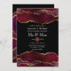 Faire-part de mariage en pierre d'agate de feuille d'or et d'agate bordeaux avec accents de noir personnalisables selon vos spécificités d'événement.