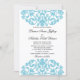 © 2012 Socialite Designs. Des éléments damassés bleus gras rendent cette invitation frappante pour toute occasion. Remplacez facilement notre texte modèle par vos propres informations d'événement.