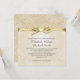 Style luxueux. Ruban d'or élégant sur damas romantique à fleurs d'or. Invitation romantique et magique pour votre journée de mariage unique et spéciale. Des invitations romantiques mariages rendront votre journée de mariage plus spéciale et unique. Conception customisée, texte et photos imprimés sur papier de base. Vous pouvez choisir votre propre texte, polices et différents types de papiers. Parfait pour votre jour de mariage, douche nuptiale, événement ou fête. Surprenez vos invités avec une invitation différente, belle et unique.
