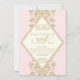 Faire-part de mariage vintage en glam damassé rose et or avec damas doré et boîte élégante en diamant en ivoire. Inspiré d'un design floral baroque Vintage, ce joli faire-part de mariage rose et or est à la mode avec les jeux d'invitation à mariage vintage moderne les plus élégants d'aujourd'hui avec son texte fantaisiste et fantaisiste et beau style formel.