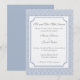 Félicitations pour votre heureuse occasion ! Faites connaître à votre famille et à vos amis tout sur votre mariage dans le style avec cette élégante invitation Simply Classic Mariage damassé en bleu serein ! Cet invitation est facile à customiser. Tout ce que vous avez à faire est d'ajouter vos informations dans les champs fournis. Si vous souhaitez personnaliser davantage la conception, cliquez sur le bouton "Customiser" où vous pouvez modifier les polices ou les couleurs de police.