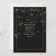 Faire-part de mariage rustique en or et en dandelion blanc contre un arrière - plan noir.