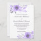Elégante invitation à mariage floral violet et gris aquarelle. Belles fleurs d'anémones violettes, aux accents de lilas et de feuilles gris qui créent un bouquet rustique. Cette invitation de mariage unique est parfaite pour un printemps, un été ou un mariage de automne.