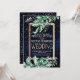 Cette faire-part de mariage élégante, artistique et magnifique est parfaite pour la saison hivernale. Elle représente des feuilles de lierre vert peints à la main et un bouquet de canneberge bordeaux sur un cadre en faux-imprimé or et un arrière - plan bleu marine d'aquarelle foncé. Cette conception est également caractérisée par une typographie de l'or enneigé, des flocons de neige tombants et de la neige répandue à travers les feuilles. C'est un design unique, moderne, artistique et chic qui ravira vos invités !