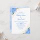 Cet élégant design floral est simple et tendance. Les détails de votre mariage sont encadrés de roses bleu aquarelle et d'accents dorés fleuris. Le texte est en bleu complémentaire. Le dos a un arrière - plan texturé bleu aquarelle.