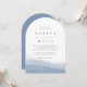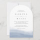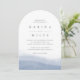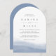 Le long du fond, d'élégantes faire-part de mariage côtières présentent des gradients d'aquarelle bleu clair avec une courbe gracieuse qui évoque le reflet et le flux de la mer. Les détails de votre mariage apparaissent dans des lettres gris minimalistes classiques avec des noms en gras.