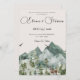 Un faire-part de mariage d'aquarelle de forêt de montagne rustique et verdoyant saisit une atmosphère naturelle et sereine. Le design comprend des illustrations d'aquarelle douce de verdure luxuriante, de montagnes verdoyantes et d'éléments forestiers comme des arbres ou des fougères. Les tons chauds de vert, brun et doux neutres dominent la palette, complétés par des polices serif manuscrites ou rustiques. Il dégage un charme chaleureux d'inspiration nature, parfait pour les mariages de plein air ou de bois.