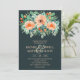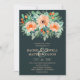 Elégante aquarelle de fleurs dans les nuances pêche à orange découpée avec feuillage vert turquoise à jade sur un arrière - plan turquoise foncé avec vos détails de cérémonie mariage dans des lettres chic pêche pâle. Un choix simple et moderne pour toutes les faire-part de mariage de saison. Modifiez l'arrière - plan en n'importe quelle couleur pour correspondre à votre thème mariage. CORRESPONDANCE d'objets dans notre collection.