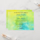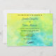 Une faire-part de mariage design et artistique. Une aquarelle jaune citron et bleu turquoise. Les couleurs se mélangent et se mélangent pour créer des touches de vert tranquille et tourbillonnent ensemble pour créer des formes nuageuses et des fleurs de couleur. Customisez avec vos propres détails mariages.