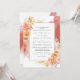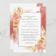 Dégustez votre hôte avec cette faire-part de mariage élégante et unique aux éléments floraux d'aquarelle exquis dans un magnifique mélange de pêche, d'orange, de rose roux, de corail poussiéreux et de champagne crème présentant vos détails mariages et de délicate tache d'aquarelle en cascade dans les tons rouille. Libellé officiel d'invitation avec le nom des parents. Même conception d'invitation sans nom de parents également disponible. Possibilité de modifier la conception à l'aide de l'outil de conception, en utilisant un bouton à la fin des zones de texte modèles et en modifiant la position du texte, le style de police ou la taille. Retour avec la tache d'aquarelle en cascade de rouille. REMARQUE : SI VOUS PRÉFÉREZ CETTE INVITATION AVEC LE DOS EN BLANC, vous pouvez effectuer cette modification en suivant ces étapes simples : cliquez sur le bouton bleu "Modifier en utilisant l'outil de conception" situé à la fin des zones de texte modèles. Ensuite, sur le calque "back", ajoutez des "éléments" dans le menu à gauche, un carré. Faites glisser les coins carrés avec votre souris et faites-le recouvrir complètement le dos. Ensuite, changez la couleur du carré en blanc dans le menu à droite. Cliquez enfin sur le bouton "fait" dans le coin supérieur. Design élégant et élégant avec des fleurs délicates et des détails d'herbe pampas. Une partie de notre "Peach Floral Delight and Rust Orange Collection" avec une variété de produits de coordination disponibles. Visitez l'ensemble de cette collection à l'adresse suivante : https://www.zazzle.com/collections/peach_floral_delight_and_rust_orange-119930026374948611
