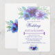 Un agencement floral sophistiqué, avec des fleurs violettes et bleues peintes à la main et un feuillage vert tendre, conçu dans un style délicat aquarelle. Cette mise en page polyvalente s'applique à merveille à la papeterie mariage, à la signalisation de la réception, aux menus, aux cartes de sauvegarde et aux notes de remerciement. La palette de couleurs vibrante mais élégante mélange les teintes tendance de l'améthyste, de l'indigo, du saphir et du vert eucalyptus, ce qui en fait un endroit parfait pour des célébrations modernes avec une touche romantique et artistique.