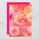 Ce faire-part de mariage moderne présente un design élégant rose et orange. avec ce coloris branché de rose chaud et orange.Un faire-part de mariage d'été amusant avec un arrière - plan d'aquarelle rose et orange chaud avec lettrage blanc.