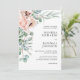 Cette conception florale d'aquarelle claire et aquarelle a un charme boho avec des branches insouciantes d'aquarelle eucalyptus et verdure et des pies beiges neutres et des roses rose pâle. Cette combinaison florale unique dans une palette de couleurs neutres fait une déclaration élégante et fonctionne magnifiquement pour les mariages décontractés ou formels. Personnalisez le modèle texte facile à utiliser avec vos détails.