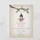 faire-part de mariage illustrant une lanterne remplie d'un arrangement floral rose accroché à une branche d'arbre avec des feuilles verts. Personnalisez le texte avec les détails de votre occasion.