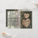 Cartes d'invitation de mariage champêtre avec un arbre rustique avec un cœur sculpté contenant vos initiales et une citation d'amour douce, des lumières clignotantes en fil et une formulation de mariage moderne sur un décor forestier délavé.