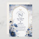 Un luxueux design mariage de style céleste avec un jardin fleuri bleu nuit, des accents dorés et une lune au croissant doré encadrée par une arche ornée. Parfait pour les couples à la recherche d'une fête romantique, mystique et d'inspiration étoilée avec des détails cosmiques élégants.