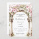 Une grande arche en marbre décorée de fleurs roses. Personnalisez et ajoutez les détails de votre fête.