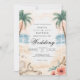 Une scène de plage sereine se déroule avec des vagues douces et des rivages sablonneux, encadrés de gracieux palmiers. Ce design évoque une atmosphère détendue et ensoleillée, parfaite pour une union en bord de mer. Sa palette d'aquarelle douce crée une ambiance onirique et romantique.