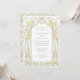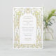 Cette faire-part de mariage luxueuse est ornée d'une bordure botanique raffinée, de vignes dorées et de fleurs d'aquarelles luxuriantes. Avec un agencement symétrique et des défilés exquis, le design s'inspire de l'éclairage européen classique et du décor de palais ancien. Des marguerites roses, des cloches bleues et des fleurs sauvages appétissants fleurissent le long du cadre, mis en valeur par des accents dorés doux et d'élégantes courbes feuillues. La mise en page avant est centrée sur la typographie intemporelle avec un côté romantique, rehaussé par une touche monogrammée de chaque côté. Au contraire, un design opulent à motifs entiers reflète une fresque au plafond ou une tapisserie historique, élevant la présentation générale avec symétrie ornementale et élégance florale. Parfait pour les mariages, les jardiniers ou les couples aux styles vintages, ce design évoque l'élégance et l'art avec tous les détails.