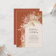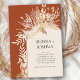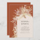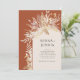 Foliage faire-part de mariage dans un duo de terre cuite et crème, pour compléter votre thème de couleur mariage. Le design botanique est orné d'une arche branchée, décorée d'un auvent de feuillage aquarelle. Style simple pour le libellé, avec l'accent mis sur les noms des mariés et des mariés. Un design élégant et aéré avec une palette de couleurs riches, chaudes et terreuses.