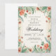 Une frise fleurie romantique encadre ce design évoquant une atmosphère douce et enchanteresse. De délicieuses fleurs de corail et une verdure verdoyante créent une belle présentation intemporelle. Cette pièce exhale une élégance classique pour une occasion mémorable.