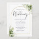 Cet élégant faire-part de mariage d'arc feuille en or vert botanique peut être personnalisé avec vos informations en typographie chic avec les détails de votre site mariage et votre code QR au verso. Conçu par Thisisnotme©
