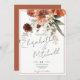 Ce design moderne et rustique présente un bouquet haut de pêche rouille, terre cuite, fleurs brunes et blanches. L'arrière - plan est blanc avec un cadre fin en terre cuite; le dos est une terre cuite molle. Ce design fait partie de la Rustic Terracotta Rust Flowers Mariage Suite de cartes créées par Simply Farmhouse Press.