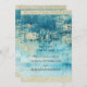 Un élégant faire-part de mariage d'or vert turquoise et champagne orné d'une peinture d'art moderne d'un bleu aqua turquoise et d'or au champagne chatoyant.