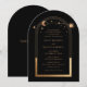Les invitations de mariage astronomique de la Lune d'or noir céleste présentent le soleil doré, la lune et les étoiles avec un cadre doré sur un arrière - plan noir. À l'intérieur, vous trouverez vos informations d'invitation de mariage personnalisées. Personnalisez en modifiant le texte dans les zones de texte. Conçu pour vous par Evco Studio www.zazzle.com/store/evcostudio