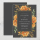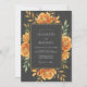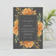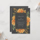 Cette conception présente un fond de charbon profond qui fait ressortir les pivoines ambre vibrantes et la verdure luxuriante. Le style d'aquarelle picturale crée une atmosphère de romance sophistiquée et de flair artistique. Les tons dorés chauds et les verts terreux offrent une riche palette adaptée à un cadre de fin de saison. Cette œuvre évoque une esthétique inspirée vintage et lunatique parfaite pour une soirée élégante.