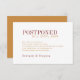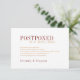 Cette élégante carte d'ajournement de mariage présente un design de typographie minimaliste moderne en or d'automne et couleur bordeaux, et le monogramme du couple sur le dos, simple et élégant. Cartes de remise pour informer vos invités mariages des informations mises à jour.